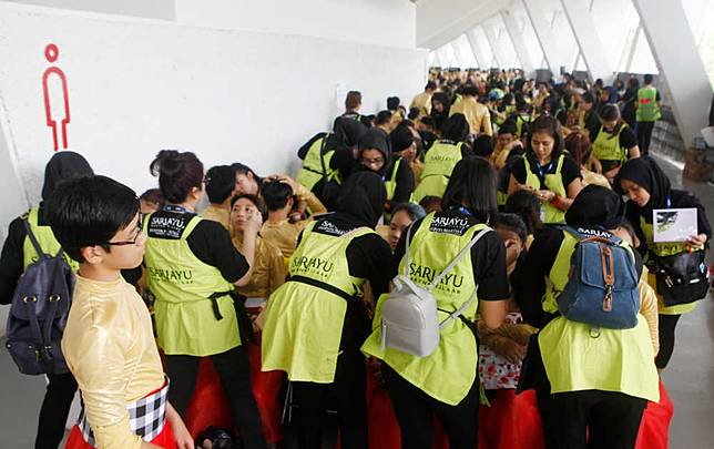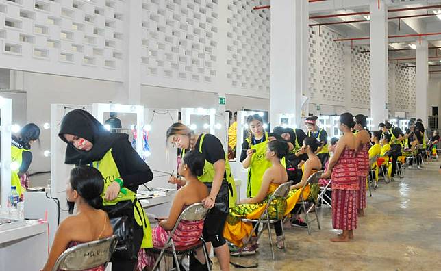 "Mereka semua harus menangani riasan sekitar 3.500 penampil yang merupakan gabungan dari penari profesional, pegiat seni, dan siswa-siswi SMA. Sedangkan waktu yang diberikan hanya sekitar dua jam saja," kata Wulan Tilaar Widarto selakuVice Chairwoman Martha Tilaar Group.